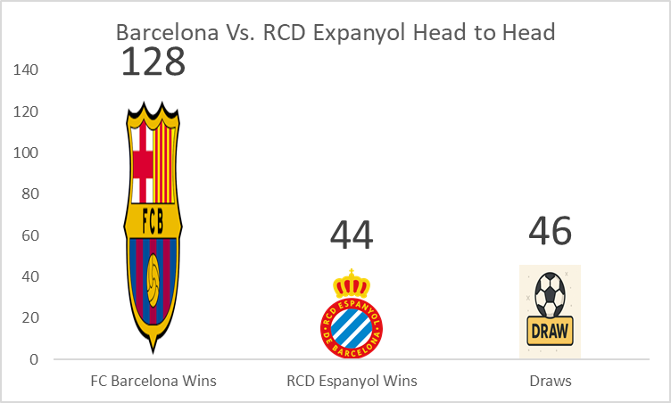 This data clearly illustrates Barcelona’s significant upper hand, winning nearly three times as many derbies as Espanyol.