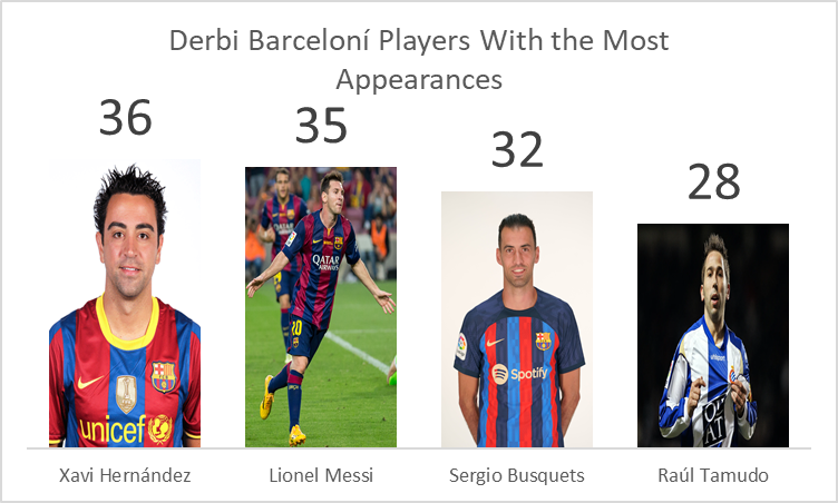 - Lionel Messi: Unsurprisingly, Messi is the all-time top scorer in the Derbi Barceloní, with a staggering 25 goals in 35 appearances. His performances often decided these clashes, with his incredible skill and goal-scoring prowess consistently proving too much for Espanyol.